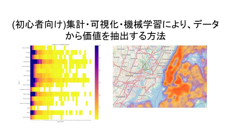 データ分析初心者の方が、実際に、データを集計・可視化・機械学習を行って、データから価値を生み出す、という機会は、なかなかないのではないでしょうか?