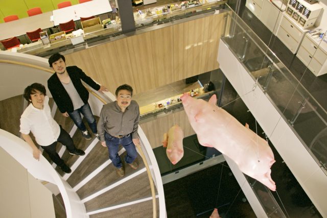 研究者たちが自由で楽しく研究を進めることができるように、組織の在り方はもちろん、建物内部の細かなデザインにもこだわったと聞きました。豚が浮いている意味は本当に全くわかりませんが。